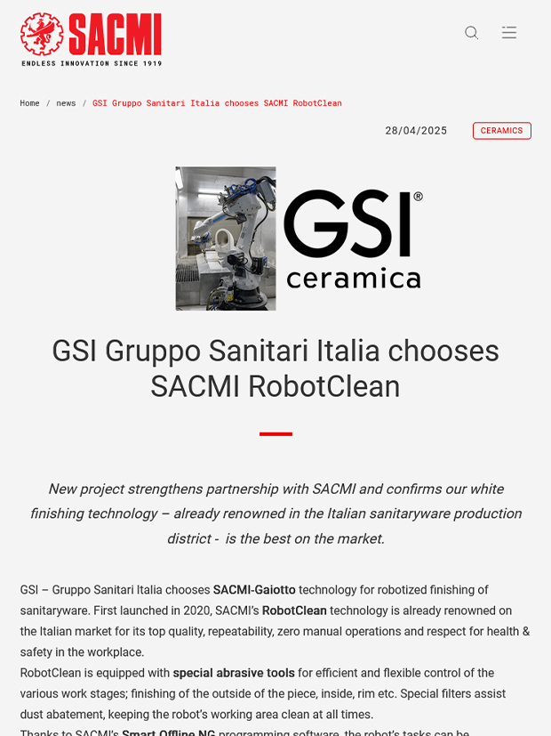GSI Gruppo Sanitari Italia chooses SACMI RobotClean