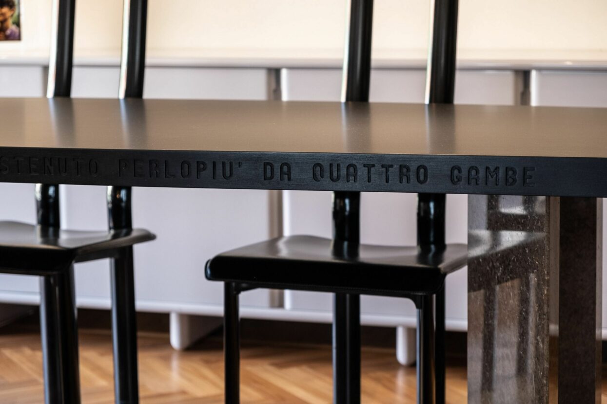The staircase becomes the generating element, accompanied by a full-height custom bookshelf that connects the levels, filters light and redefines the internal volume. Above the dining table hangs a scenographic pendant, the Moon lamp by Davide Groppi, chosen to dialogue with a photograph by Edoardo Romagnoli.