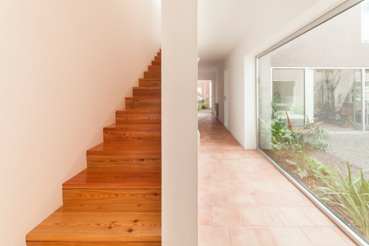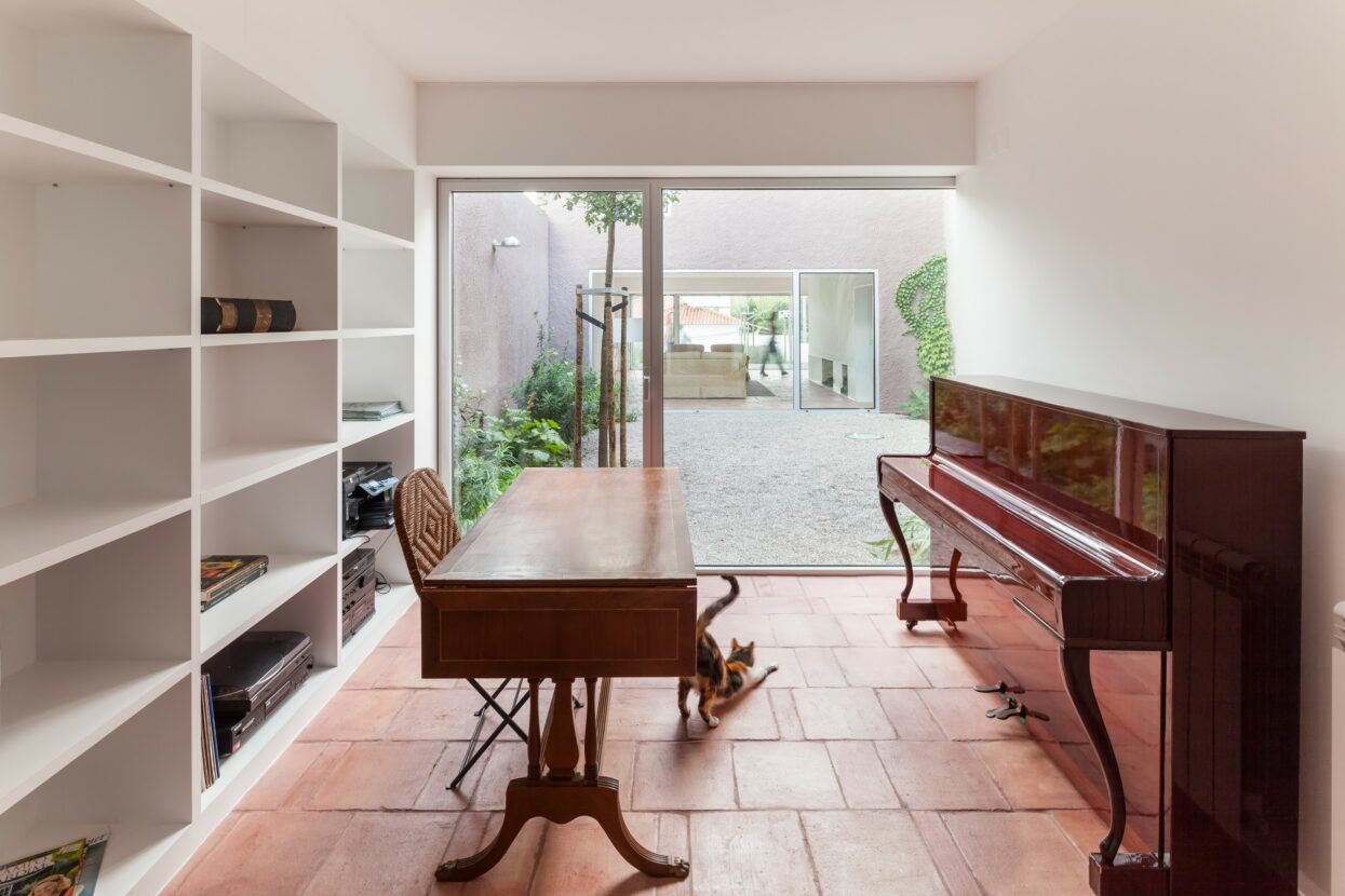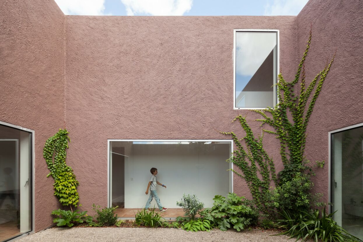The house is located in a small village 25 km south of Lisbon, within the natural park of Azeitão. On a narrow, inherited plot, a couple of agronomists with two children decided to build a new way of living. The design response is a house defined by three internal courtyards, which compensate for the slender shape of the land and shape a domestic experience marked by light, shadow, silence and nature.