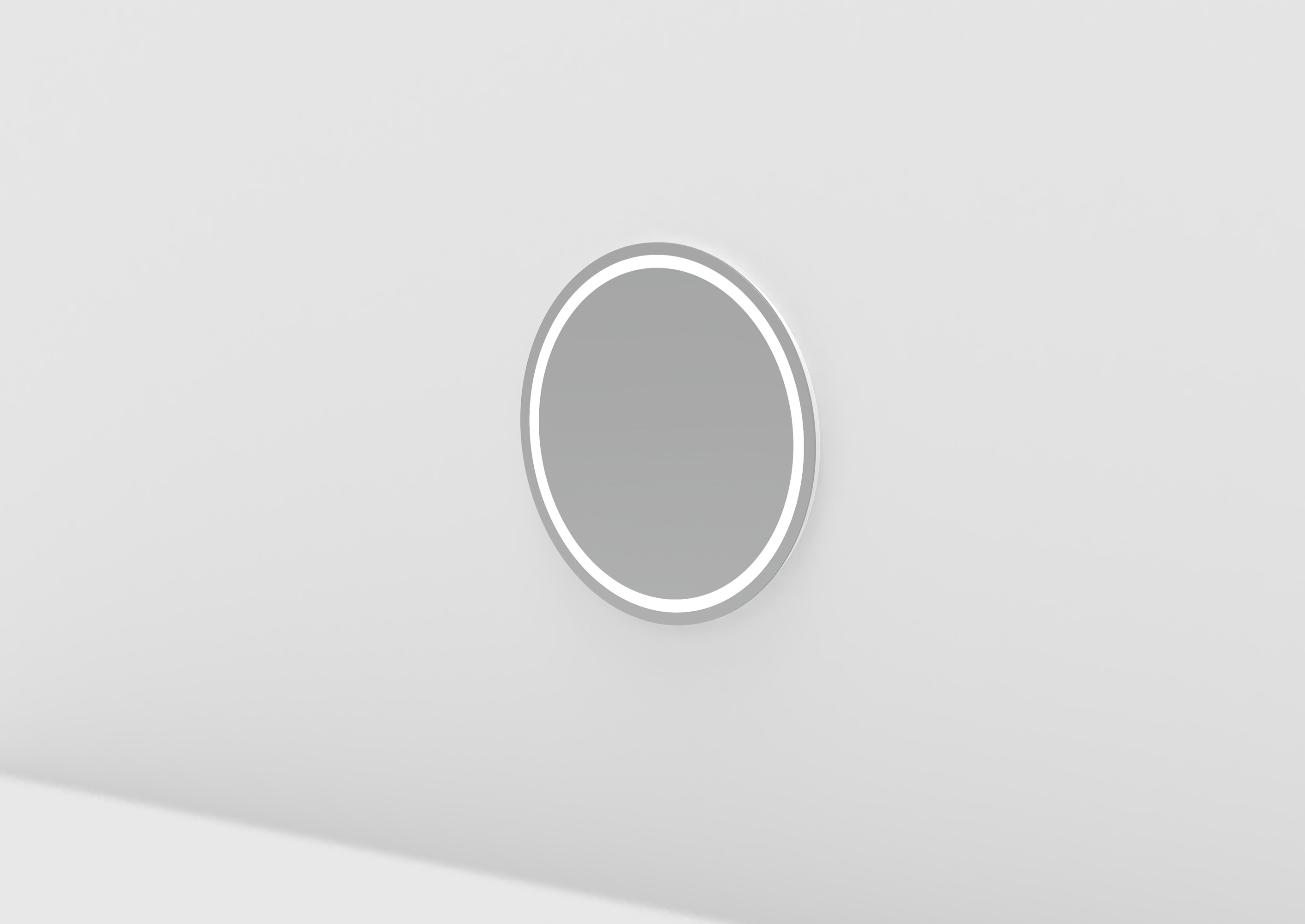 Specchio rotondo con illuminazione frontale, realizzato con vetro da 4mm con bordo lucido. Il cerchio centrale sabbiato consente una diffusione morbida e uniforme della luce. Il telaio è composto da una struttura portante realizzata in acciaio zincato con profilo a C, per garantire solidità, durata e facilità di installazione.